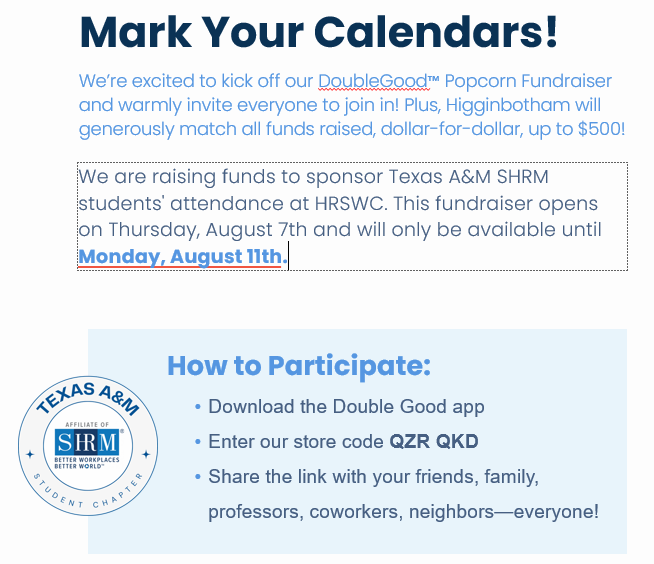 Whether you are new to the HR field or have many years of experience, we are a local starting point for networking, information, professional development and continued support of excellence in Human Resources. Brazos Valley SHRM is an affiliate of the Society for Human Resource Management.