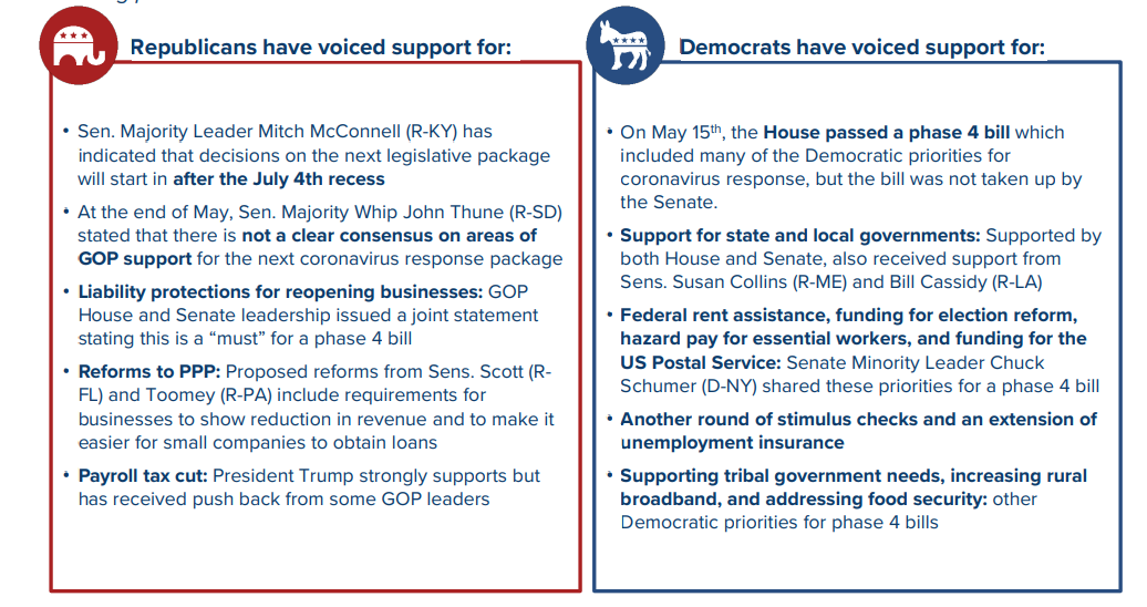 As the U.S. contends with the ongoing COVID-19 pandemic, three separate acts have been signed into law since March 6, 2020, with a fourth package now under consideration by the Senate.